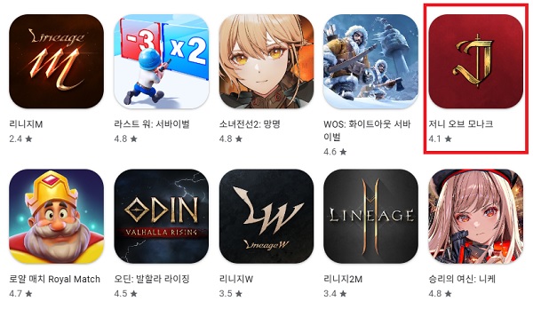 그리고 지난 5일 출시한 방치형 MMORPG ‘저니 오브 모나크’는 흥행을 이어가고 있다. 11일 현재 구글 플레이스토어 매출 순위에서 5위로 뛰어올랐다. 출시 이후 꾸준히 순위를 끌어올렸고, 출시 7일차만에 5위 자리를 차지했다. 더불어 구글 플레이스토어 내에 매출 순위 TOP 10에 ‘리니지’ IP 게임이 4개나 자리잡으며, ‘리니지’ IP가 건재함을 과시하고 있다.