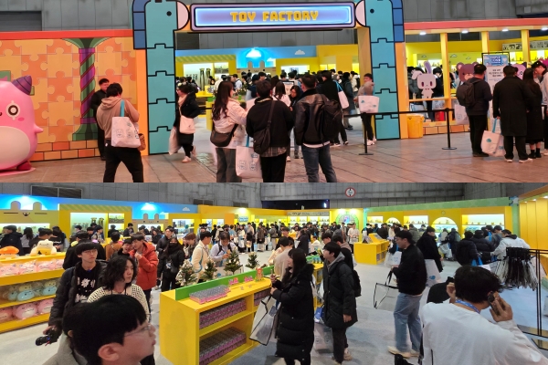 ‘토이 팩토리’ 굿즈샵 역시 사람들의 발걸음이 끊이지 않았다. 특히 이번 굿즈는 작년 ‘더현대 서울’ 팝업에서 진행한 유저 설문조사 의견을 적극 반영해 기획했다고 한다.