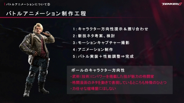 예컨대 폴의 경우 “시리즈를 거듭하면서 개성이 희미해지지 않을까?”라고 생각했다. 이런 인식 아래, 새로운 기술에는 "단순히 파워풀한 것뿐만 아니라 유도를 베이스로 한다", "그가 사용하는 것은 무술에 파워를 탑재한 기술이다"라는 콘셉트를 설정했다.