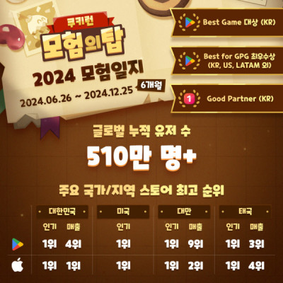 데브시스터즈(대표 조길현)의 개발 스튜디오 오븐게임즈(대표 배형욱)가 개발한 ‘쿠키런: 모험의 탑’이 ‘2024 모험일지’를 공개하고, 작년 6월 출시 후 반년간 유저와 함께한 여정을 기록했다.
