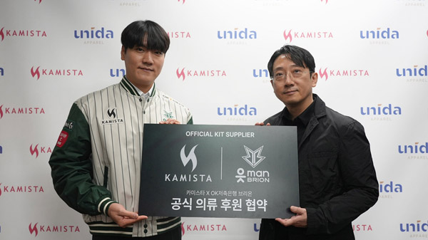 ‘카미스타’는 MLB, NHL, NBA 유니폼 제작 수출을 비롯해 수많은 팀 웨어를 제작해 온 유니다의 기능성 스포츠웨어 브랜드로, 브리온이스포츠의 LCK팀 ‘OK저축은행 브리온’과 2025년 의류 부문 후원 계약을 체결했다.