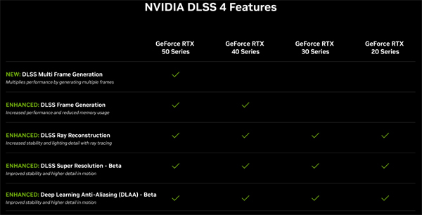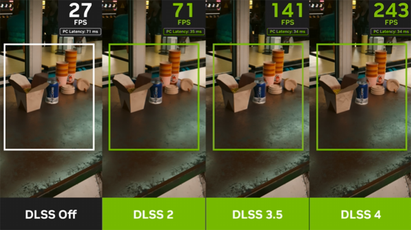 약 2년 반만에 새롭게 공개된 DLSS 4는 기존 방식에 더해 다중 프레임 생성 기술이 포함되는 것이 특징이다. 이는 RTX 50 시리즈에서만 완전하게 활용 가능하며, RTX 40 등 이전 세대 그래픽 카드에서는 DLSS 4의 일부 기능만 이용할 수 있다.