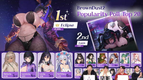 1위는 이클립스, 2위는 로엔이 차지했다. 1등과 2등의 표 차는 5천 표 이상 벌어질 정도로 이클립스가 압도적인 인기를 과시했다. 특히, 브라운더스트2는 지난 2024년 12월 일본에서 진행한 코믹 마켓 C105에도 참가했는데, 당시에도 이클립스 인기가 가장 높아 관련 굿즈의 판매율이 높았다고 한다.