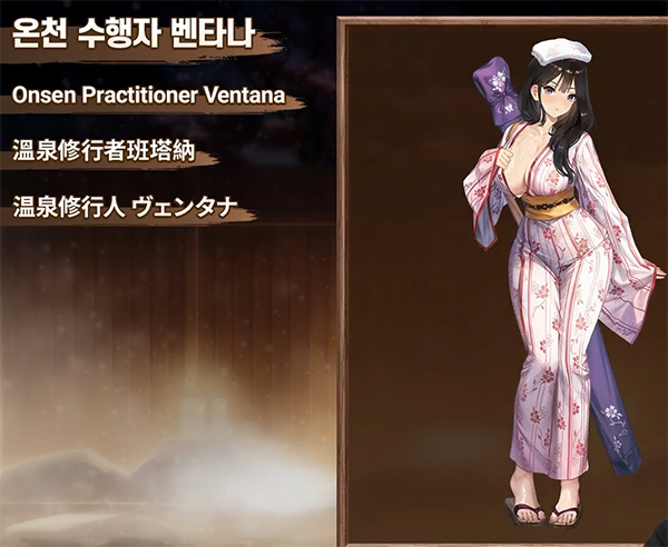 온천 코스튬으로 ▲온천 수행자 벤타나는 설산에 온천을 수행을 하기 위해 온 방문객 콘셉트다. 단일 대상을 공격하며, 공격 대상이 도발이나 일점사 상태라면 강력한 디버프를 부여하게 된다.