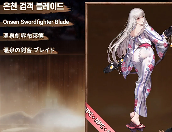 ▲온천 검객 블레이드는, 복수를 위해 설산을 방문한 엄청난 실력의 검도부 졸업생으로설정됐다. 아쉽게도 플레이어블이 아닌 NPC로 먼저 선보이며, 우선 스토리를 통해 블레이드를 만난 후 향후 플레이어블 캐릭터로 출시 가능성을 고려하고 있다.
