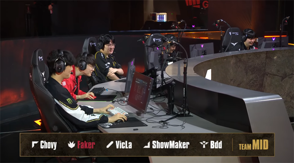 미드 선수들은 잭스와 요네, 아즈리얼, 브라움, 스카너를 선택하며 경기에 나섰다. 원딜 선수들은 나르와 세주아니, 바루스, 흐웨이, 사일러스를 고르면서 대응을 보여줬다. 특히 페이커는 미드 팀의 정글로 나서 눈길을 모았다.