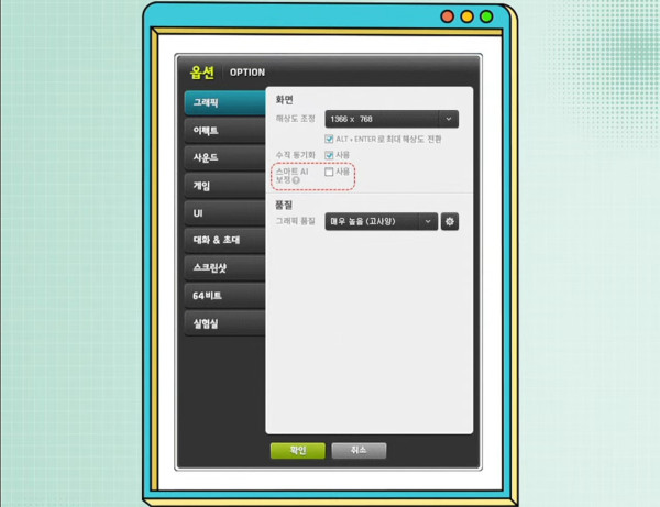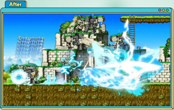이 기능은 THS가 개발한 ‘로스리스 스케일링’ 기술을 적용한 것이다. 원래 저사양 PC에서 고사양 게임을 부드럽게 표현하는 기술인데, 김 디렉터가 다른 게임에 적용하다가 ‘메이플스토리’에 적용해보니 효과가 좋아서 추가하기로 의견을 모았다고 한다. 이에 개발사인 THS에 연락해 가능성을 타진했고, 협업이 결정되어 정식 옵션으로 도입하게 된다.