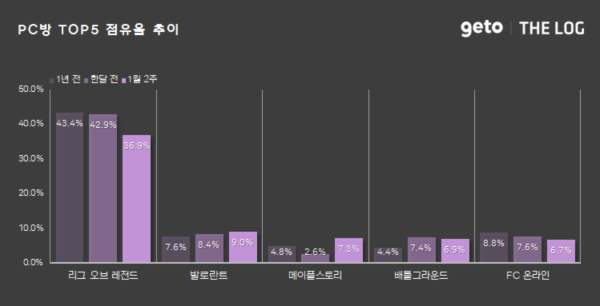 게토에서 제공하는 PC방 게임 통계서비스 더로그에서 2025년 1월 2주(2025.01.06 ~ 2025.01.12) PC방 주간 리포트를 공개했다.