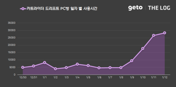 특히 지난 12월 진행했던 PC방 무료 플레이 이벤트 시즌 1의 종료 이후 1월 9일부터 강화된 혜택과 함께 카트라이더 드리프트 PC방 무료 플레이 시즌 2 이벤트를 시작하며 PC방 사용시간이 크게 증가한 것으로 풀이된다.