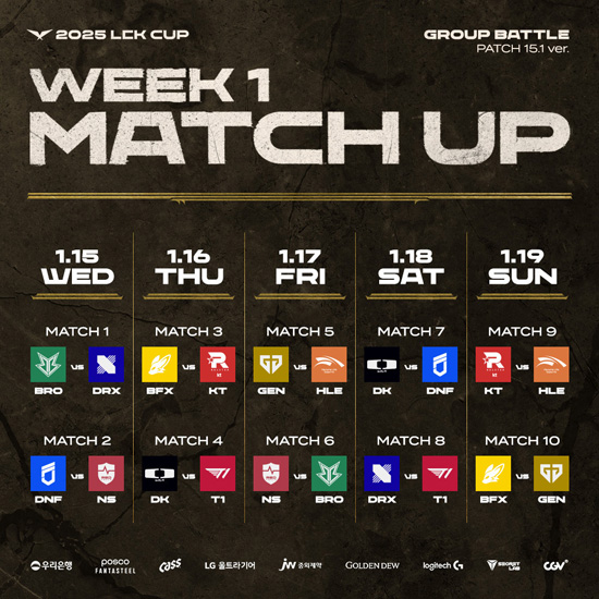 '리그 오브 레전드(LoL)' 이스포츠의 한국 프로 리그를 주최하는 리그 오브 레전드 챔피언스 코리아(LCK, 대표 오상헌)는 오는 15일(수)부터 19일(일)까지 서울 종로구 롤파크에 위치한 LCK 아레나에서 2025 LCK컵 개막 주차 경기가 진행된다고 밝혔다.
