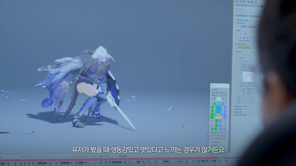 예를 들어 2초가 걸리는 스킬에서 자연스러운 동작을 하려면 2초 전체가 필요한데, 전투기획파트에서 빠른 조작을 위해 1초에 무조건 해달라는 요청이 들어온다. 1초에 30프레임이 쓰이는데, 30장이라는 그 안에서 어떤 걸 어떻게 표현할지 고민하고 그 1초가 누군가에게 기억에 남을 수 있는 소중한 30장의 컷인 만큼 노력을 많이 한다는 것이다.