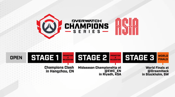 한국 지역이 포함된 '오버워치2' 챔피언스 시리즈 아시아 역시 확장을 도모한다. 한국과 일본, 태평양 3개 하위 리그로 운영되는 아시아 지역의 리그에서는 많은 팀들이 새롭게 합류를 결정하면서 더욱 치열한 대결을 예고했다. 일본 지역은 8개 팀에서 12개 팀으로, 태평양에는 호주 지역 팀들이 추가된다.