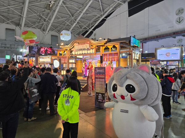 정해진 시간마다 무대에서는 캐릭터 코스프레 행사가 진행됐다. 이번 업데이트에 등장한 온천 수행자 벤타나와 온천 관리인 리베르타, 블레이드가 순서대로 등장하며 포즈를 취했다.