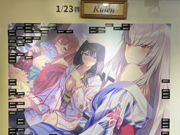 '이치방쿠지'로 불리는 뽑기 복권의 형태로 된 그림판이다. 뽑았을 때의 결과에 따라 다양한 경품이 주어졌는데, 한 칸씩 뽑다 보면 캐릭터 그림이 완성되도록 해놨다. 그래서 날짜별로 나오는 캐릭터가 위에 적혀있다.