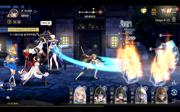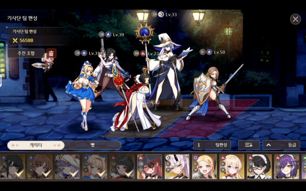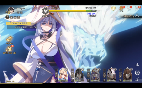 전투는 5명의 캐릭터로 덱을 구성하고, 전열과 중열, 후열에 각각 캐릭터를 배치해 횡스크롤 방식으로 이뤄진다. 자연스럽게 전열에는 방어력이 높은 탱커나 딜탱, 중열에 딜러, 후열에 힐러를 배치하는 구조로서 실제 이런 배치가 원활한 스테이지 클리어에도 적합하도록 설계됐다.