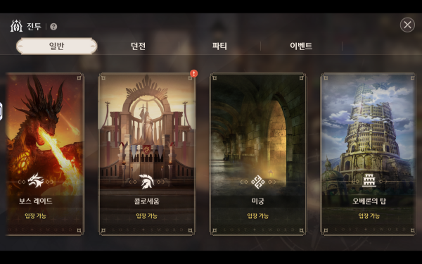 메인 스테이지 외에도 다양한 전투 관련 콘텐츠가 준비됐다. 요일별로 바뀌는 보스를 상대해 데미지로 점수를 경쟁하는 ▲보스 레이드, 다른 유저와 겨루는 비동기식 PvP 콘텐츠 ▲콜로세움, 던전 탐험의 재미를 더한 ▲미궁, 각 층에 있는 보스를 쓰러뜨려 다음 층에 도전하는 ▲오베론의 탑 등이다. 또한, 골드나 경험치북, 장비 파밍 등 원하는 아이템을 얻을 수 있는 ▲던전도 존재한다.