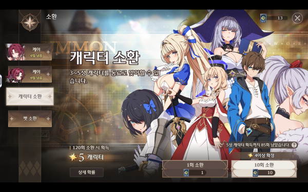 게다가 천장 시스템을 통해 누적 소환 10회에 4성, 120회에 5성 캐릭터를 확정적으로 얻을 수 있다. 무엇보다 캐릭터 승계를 통해 새로운 캐릭터를 얻어도 덱 전환이 자유롭다. 캐릭터 승계는 기존에 육성한 캐릭터에 쏟은 경험치를 다른 캐릭터에게 전달해 주기에 그만큼 성장 재화를 아낄 수 있으며, 승계 시 따로 필요한 아이템도 없다.