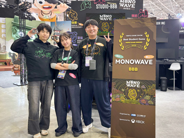 스튜디오 BBB는 지난달 23일부터 26일까지 대만 타이베이 난강 전시장(TaiNEX)에서 열린 '타이베이 게임쇼 2025(Taipei Game show 2025)'의 인디게임 어워드에 '모노웨이브(MONOWAVE)'를 출품해 8개의 수상 부문 중 '최고의 학생 게임(Best Student Game)' 최종 수상작으로 선정되었다.