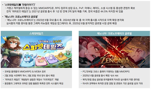 별도 기준 2024년 4분기 및 연간 매출은 대폭 성장했고, 영업이익 및 당기순이익은 흑자 기조를 이어가며 내실을 강화했다. 작년에는 ‘소울 스트라이크’가 새로운 대표 타이틀로 자리매김했고, ‘제노니아’의 지역확장으로 견조한 실적을 보였다.