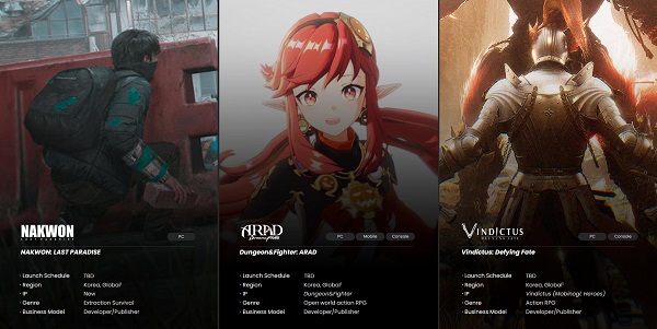 먼저 하드코어 액션 RPG 신작 ‘퍼스트 버서커: 카잔’이 3월 28일 글로벌 출시를 앞두고 있으며, ‘던전앤파이터’ 세계관을 계승한 오픈월드 액션 RPG ‘던전앤파이터: 아라드’, 언리얼 엔진으로 개발 중인 차세대 3D 액션 RPG ‘프로젝트 오버킬’ 등 ‘던전앤파이터’ IP를 활용한 다양한 신작들을 개발 중이다.