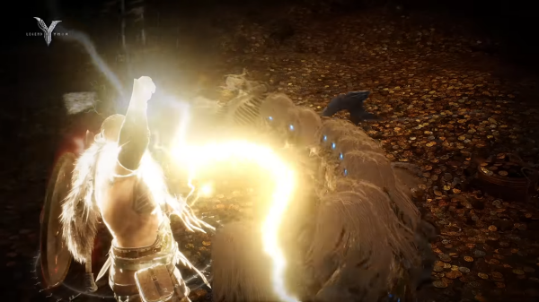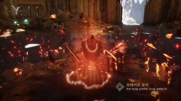 ▲ 브레이브 로어는 주변 대상을 공격하고 자신을 강화하는 기술이다. 주변 대상을 공격하는 범위는 광범위해 넓은 장판 공격에 가깝다. 해당 스킬들 외에도 번개의 힘을 받아 지면을 강하게 강타해 주변의 적들에게 데미지를 입히는 스킬도 존재한다.