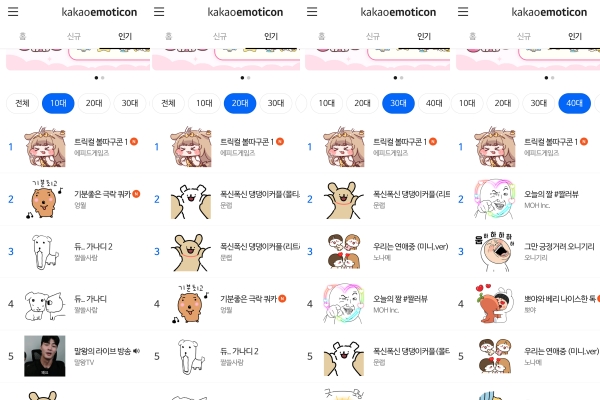 그런데, 출시한 지 하루만에 전체 카카오톡 이모티콘 인기 순위에서 1위에 오른 것으로 나타났다. 전체 연령대에서 1위를 기록한 것.