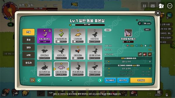 유저와 함께 다니는 공룡 동물은 각기 주요 성능을 가지고 있어 탐험에 유리한 효과를 불러 온다. 특정 섬에서의 공격 및 방어력 상승이나 무기에 따른 색다른 추가 성능 부여가 가능해, 탐험 직전 알맞은 동물 조합을 맞추는 것이 필수다. 업그레이드를 거치면서 더욱 강력한 효과를 가져올 수 있기에 미리 조합을 염두한 파밍이 필요하다.