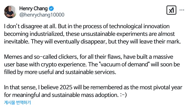 또 트럼프 2.0 시대에서 제도화가 이뤄져 법적 옥석 가리기가 진행될 것이며, 제도에 편입된 코인은 큰 기회를 받고 아닌 코인은 사라질 것이라고 전망했다. 더불어 회사에 미국식 거버넌스 시스템을 도입해 지속 가능한 사업 모델을 구축하겠다는 목표도 제시했다.
