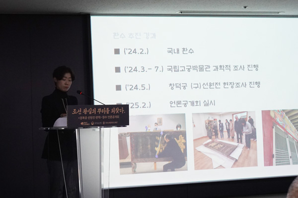 국가유산청, 국외소재문화유산재단, 라이엇 게임즈 코리아, 국립고궁박물관 등의 관계자가 모인 가운데, 2월 27일 서울 종로구에 위치한 국립고궁박물관에서 '국외소재문화유산 환수 기념 언론공개회'가 진행됐다. 이 자리에서 라이엇 게임즈 코리아의 후원을 받아 환수된 선원전 편액이 공개됐다.