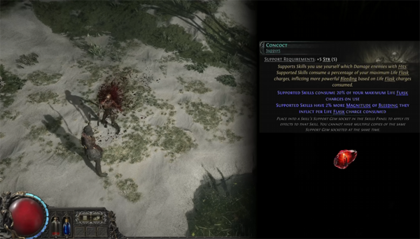 가장 눈에 띄는 신규 보조 젬은 Embitter와 Concoct다. Embitter의 경우 해당되는 스킬의 피해를 냉기로 바꾸는 젬이다. 이에 좀 더 냉기 비중이 높은 빌드 구성이 가능해졌다. Concoct의 경우 생명력 플라스크를 소모해 타격 스킬에 출혈 피해를 덧붙일 수 있는 보조젬이다. 전작에서도 출혈 관련 빌드들이 많이 사용된 만큼 신규 보조 젬을 바탕으로 많은 부분들이 변화할 것으로 예상된다.