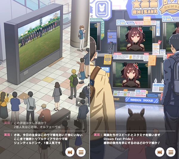 평상시 명령어 외에 무언가를 선택하는 것은 기본적으로 마음가짐 습득 시에만 가능하며, 그 외에는 탭하여 이것저것 선택하거나 화면 전환을 할 필요가 없다. 필요한 정보는 평상시 육성 화면에서 확인할 수 있기 때문에, 최근 '메카 우마무스메' 편 시나리오처럼 쾌적한 육성이 가능하다.