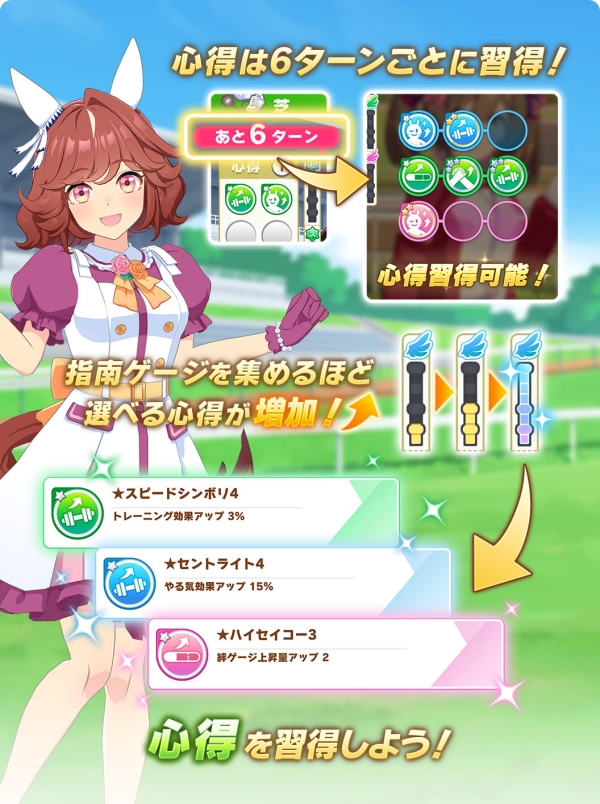 -특기 트레이닝을 가진 우마무스메는 친구 게이지와 친구 Lv를 얻는다.