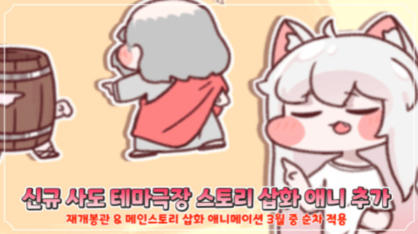또한 신규 사도 테마극장 스토리에도 삽화 애니메이션이 적용되며, 메인 스토리 전체에도 역동적인 연출이 3월 중 순차적으로 추가될 예정이다. 에피드게임즈 측은 더욱 생동감 있는 이야기와 깊이 있는 감정을 전달할 수 있도록 계속해서 개선해 나가겠다는 계획이다.