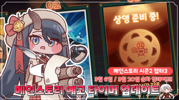 그리고 오는 6일에 메인 스토리 시즌2 챕터3의 전반부가 공개된다. 이번 에피소드 또한 1차와 2차로 나뉘어 순차적으로 업데이트되며, 1차에서는 1~7화가 먼저 오픈된다. 후반부인 3챕터 2차 8~15화 업데이트는 3월 20일에 진행될 예정이다.