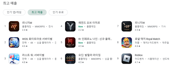 모바일 인덱스 3월 5일자 기준 모바일 매출 차트에서는 엔씨소프트의 '리니지M'이 매출 1위를 차지하며 글로벌 게임들과의 경쟁에서 승리했다. 이와 함께 위메이드의 '레전드 오브 이미르'는 상승세를 유지하며 매출 3위를 달성해 새로운 경쟁 구도를 만들었다. 기존 1위와 2위였던 라스트 워: 서바이벌과 WOS: 화이트아웃 서바이벌은 지난주에 비해 순위가 떨어졌다.