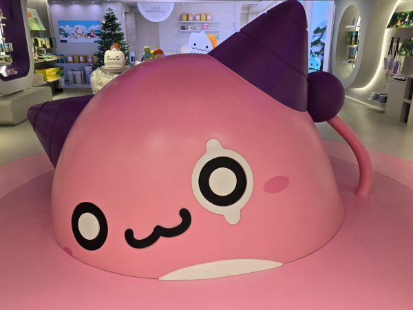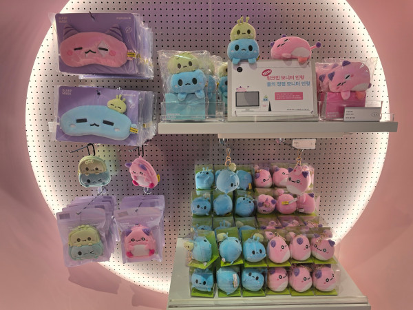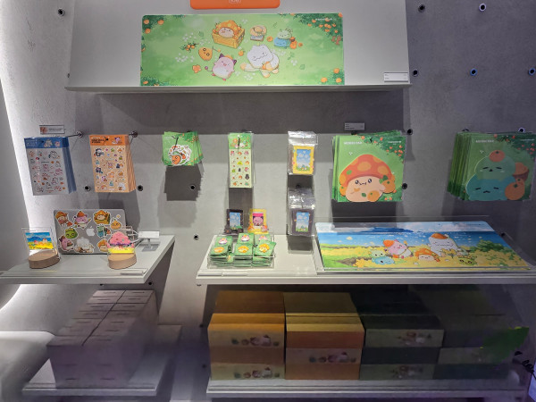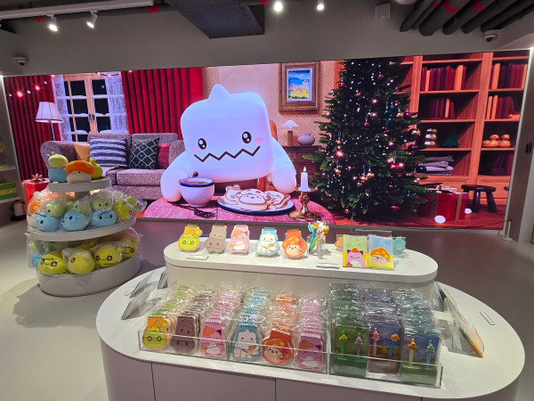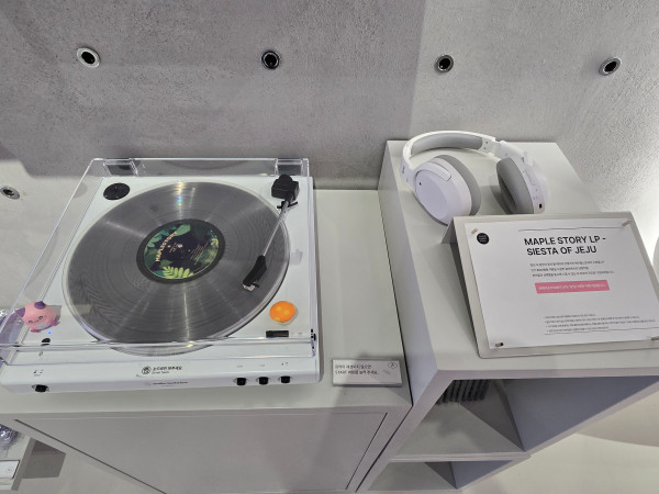 굿즈 스토어 내부 여기저기에도 캐릭터들로 채워졌다. 굿즈 전시 공간이 캐릭터 형태로 파였고, 캐릭터 블록도 쌓아놨다. 대형 LED에서는 영상이 상영됐고, 인기 BGM을 담은 LP도 직접 들을 수 있도록 구성했다.