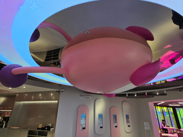카페를 모두 즐겼으면 이제 굿즈 스토어를 둘러볼 시간이다. 이 공간은 '핑크빈 출몰지역' 콘셉트로 꾸며진 곳이라, 여기저기 핑크빈이 보인다. 특히 저 멀리 핑크빈의 머리가 보인다.