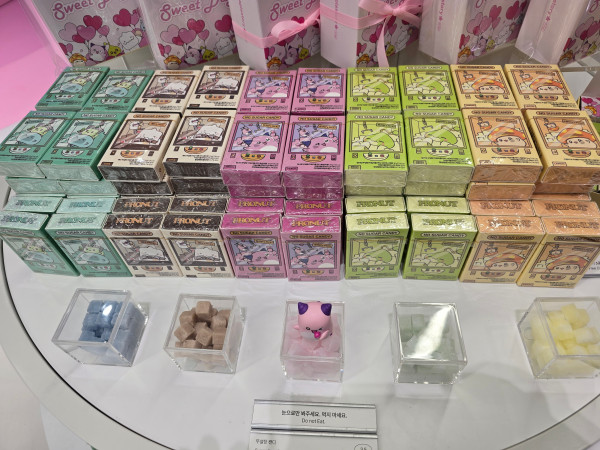 굿즈의 종류는 정말 다양했다. 인형이나 쿠션부터 안대, 심지어 무설탕 캔디까지 마련되어 눈길을 끌었다.