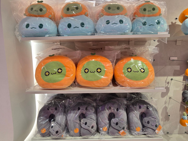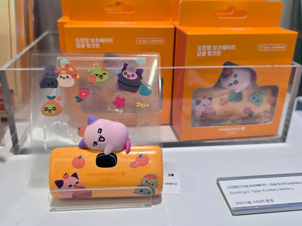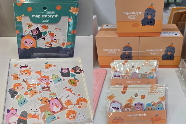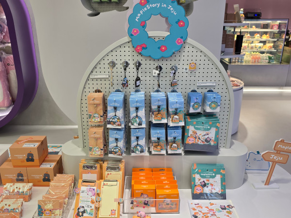 하지만 핵심은 따로 있다. 이곳에서만 판매되는 한정 굿즈 라인업인 '메이플스토리 인 제주'가 바로 그것이다. 제주 지역을 상징하는 감귤이나 돌하르방을 기반으로 만들어진 스페셜 굿즈가 대부분을 차지했다.