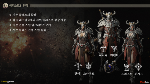 한편, 4월 업데이트될 에피소드 3 : 공성전은 MMORPG의 대표 콘텐츠인 공성전을 비롯해 클래스 전직도 진행된다. '롬'은 기존의 3인 클래스를 유지한 채 전직으로 기존 클래스의 확장을 도모한다. 각 클래스가 2개의 서브 클래스로 성장하여 클래스의 개성을 강화하고, 성장의 재미도 강조할 예정이다.