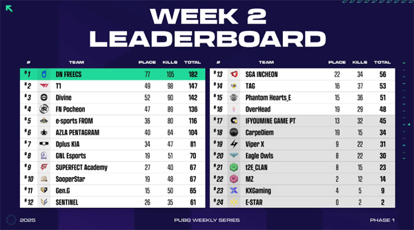 크래프톤의 주관으로 '배틀그라운드'의 한국 공식 e스포츠, '펍지 위클리 시리즈(PWS): 페이즈1 2주차 경기가 3월 11일부터 15일까지 진행됐다. 1주차에서 기존 프로팀들의 강세가 뚜렷하게 나타난 가운데, 2주차에서도 각 팀들은 치열한 난타전을 펼쳤다.