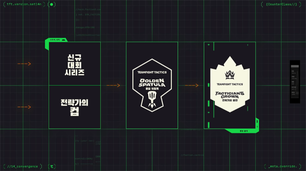 '전략적 팀 전투' e스포츠에도 큰 변화가 예고됐다. 이번 세트 14의 성적을 바탕으로 열리는 세트 15의 e스포츠는 새로운 1티어 경쟁 체계가 추가되면서 프로 단계의 선수들에게 더욱 큰 몰입감과 경쟁을 선보일 수 있게 구성한다. 즉, 좀 더 집중된 대회를 통해 스타 선수 발굴과 선수들에게는 안정적인 대회를 제공하는 것이다.