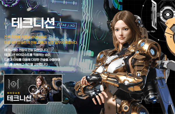 이와 함께 탱커 위치로 아군을 보호하고, 검과 방패를 사용하면서 보호 스킬로 무장한 인포서가 있다. 힐러 역할을 맡으면서 동시에 드론과 타워를 적극적으로 활용하고, 다양한 전술을 이어가는 테크니션은 또 다른 인기 슈트가 될 가능성이 높다. 특히, 힐러 역할이 집중된 테크니션은 다양한 콘텐츠에서 인기 직업으로 자리잡을 가능성이 가장 높다.