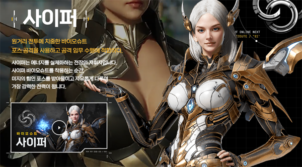 이밖에 나머지 3종은 유저 숙련도와 컨트롤 방향에 따라 난이도가 존재할 가능성이 크다. 사이퍼의 경우, 원거리 마법사 계열이라고 보면 쉽다. 이들이 사용하는 포스 공격은 물리 공격과 달리 에너지를 실체화하는 것으로, 주요 스킬에는 광역 공격과 도발 능력도 있어 탱커 역할을 일부 맡게 될 예정이다.