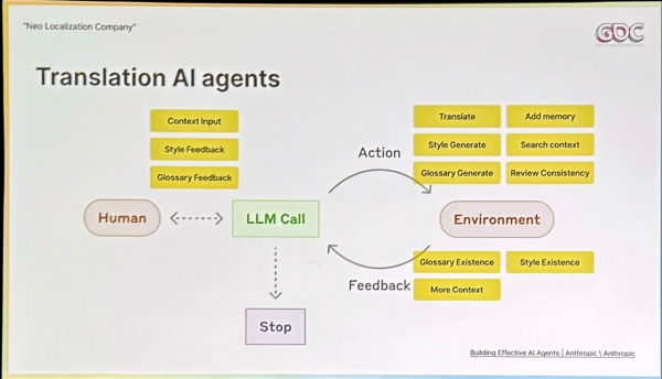“간단히 말해서, 우리는 게임 현지화에 혁명을 일으키려고 한다. 모든 번역을 AI 에이전트로 완성하는 것을 목표로 하고 있다. 기존의 MT(기계번역)+PE(포스트에디팅)와 같은 접근방식이 아니다"라고 노다는 말했다. 그는 이 개념을 자율주행차에 비유하며 “완전 자율형 번역 서비스, 말하자면 현지화 버전의 웨이모(Waymo)를 목표로 하고 있다”고 표현했다.