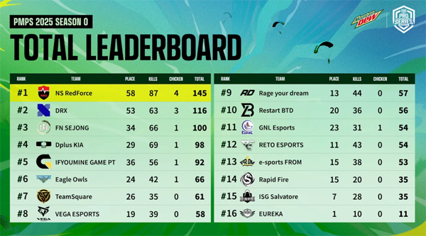 농심의 활약은 대단했다. 매치3과 4, 5의 치킨으로 이미 2위권과의 점수를 50여점이나 벌렸다. DRX와 디플러스 기아 역시 뒤늦게 기세를 올리면서 추격에 나섰지만, 넘어간 경기를 뒤집기에는 무리였다. 결국 모든 'PMPS 시즌 0' 경기를 마친 결과, 농심이 우승컵을 가져가며 경기를 마무리 지었다.