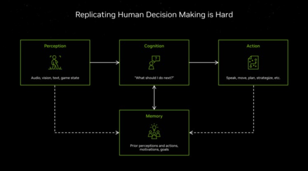 이것이 가능한 것은 소규모 언어 모델(sLM)과 검색 증강 생성(RAG) 기술이 적용됐기 때문이다. 이 모델은 인간과 유사한 빈도로 계획을 세워 현실적인 의사 결정을 가능하게 한다. 또한 시각과 청각용 멀티 모달 sLM은 AI 캐릭터가 오디오 신호를 인식하고 주변 환경을 이해할 수 있도록 한다.
