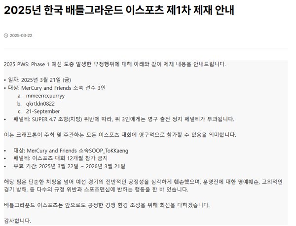 ■ 방플 사건으로 논란 커진 'PWS: 페이즈1' 아마추어 예선