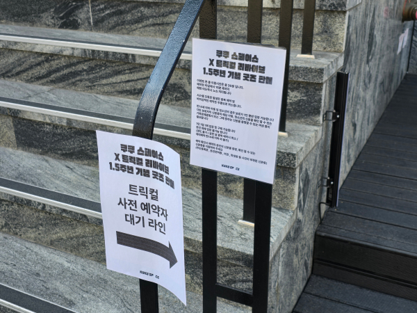이곳은 오는 4월 6일까지는 네이버를 통해 예약을 진행한 사람만 상품 구매가 가능하도록 운영한다. 그래서 정문 앞에는 사전 예약자 대기 공간이 마련됐고, 이곳에서 신분을 확인한다. 예약 없이 방문할 경우 굿즈 관람을 자유롭게 할 수 있으나, 구매는 불가능하다.