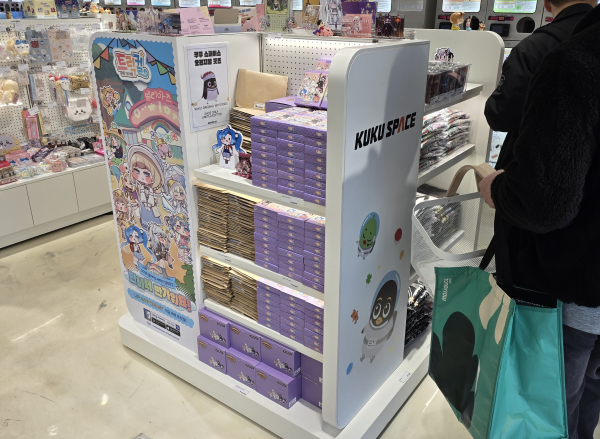 이곳이 쿠쿠스페이스에 마련된 '트릭컬 리바이브' 굿즈 판매 공간이다. 왼쪽의 스탠드 매대와 가운데 벽에 있는 매대 등 크게 두 곳의 공간에서 굿즈를 만날 수 있다.